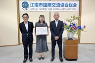 国際交流協会のふくらの家の放課後学習支援事業で勉強していたアペクシャ ガルティ さんが司会を務め、 石井悦雄会長のあいさつの後、長年協会の為に活動された方の表彰が有り、 江南市長をはじめとする来賓の皆様によるご祝辞をいただきました。